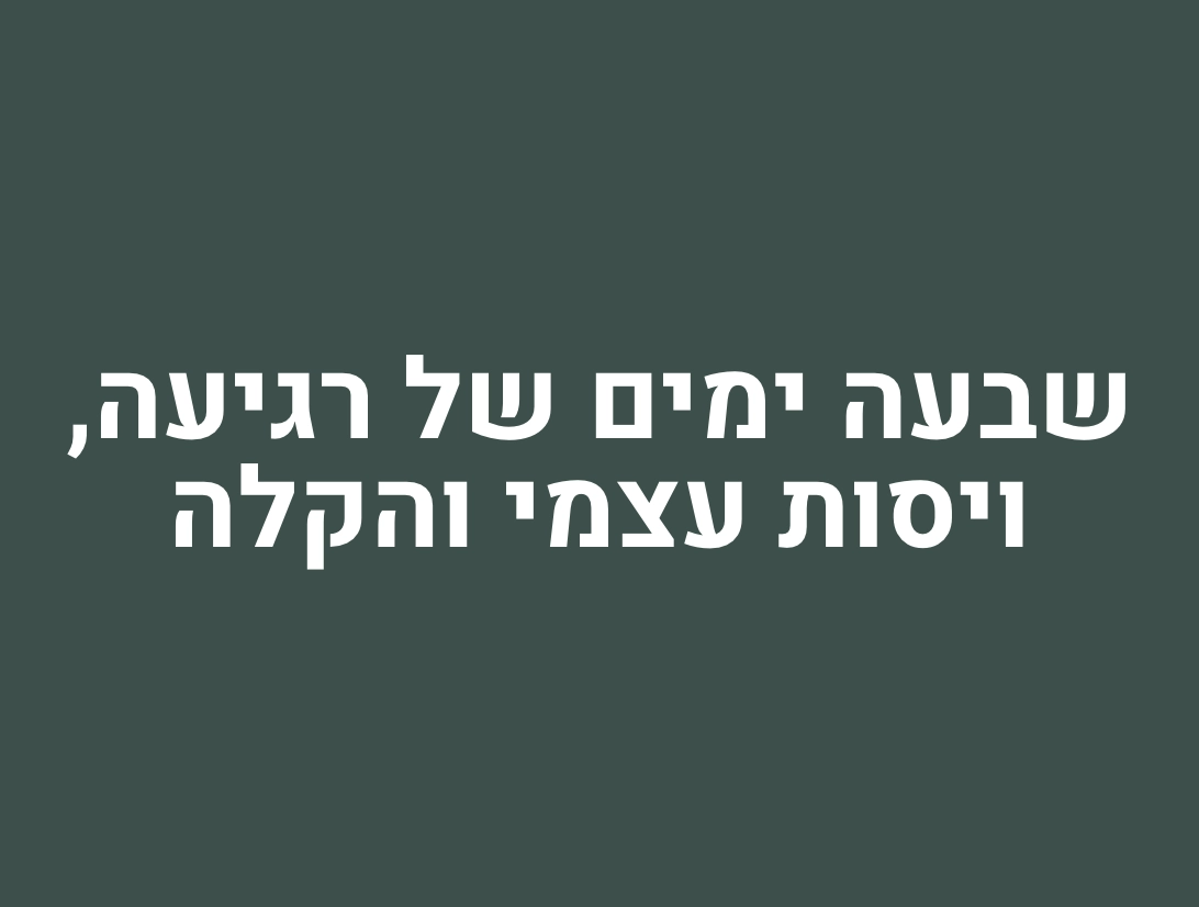 שבוע אחד שמוריד את רמות הסטרס בגוף בצורה מוחשית. נשימה קצרה, שינה טובה יותר, ויותר שקט בראש, גם אם אתה מרגיש מוצף כבר שנים.